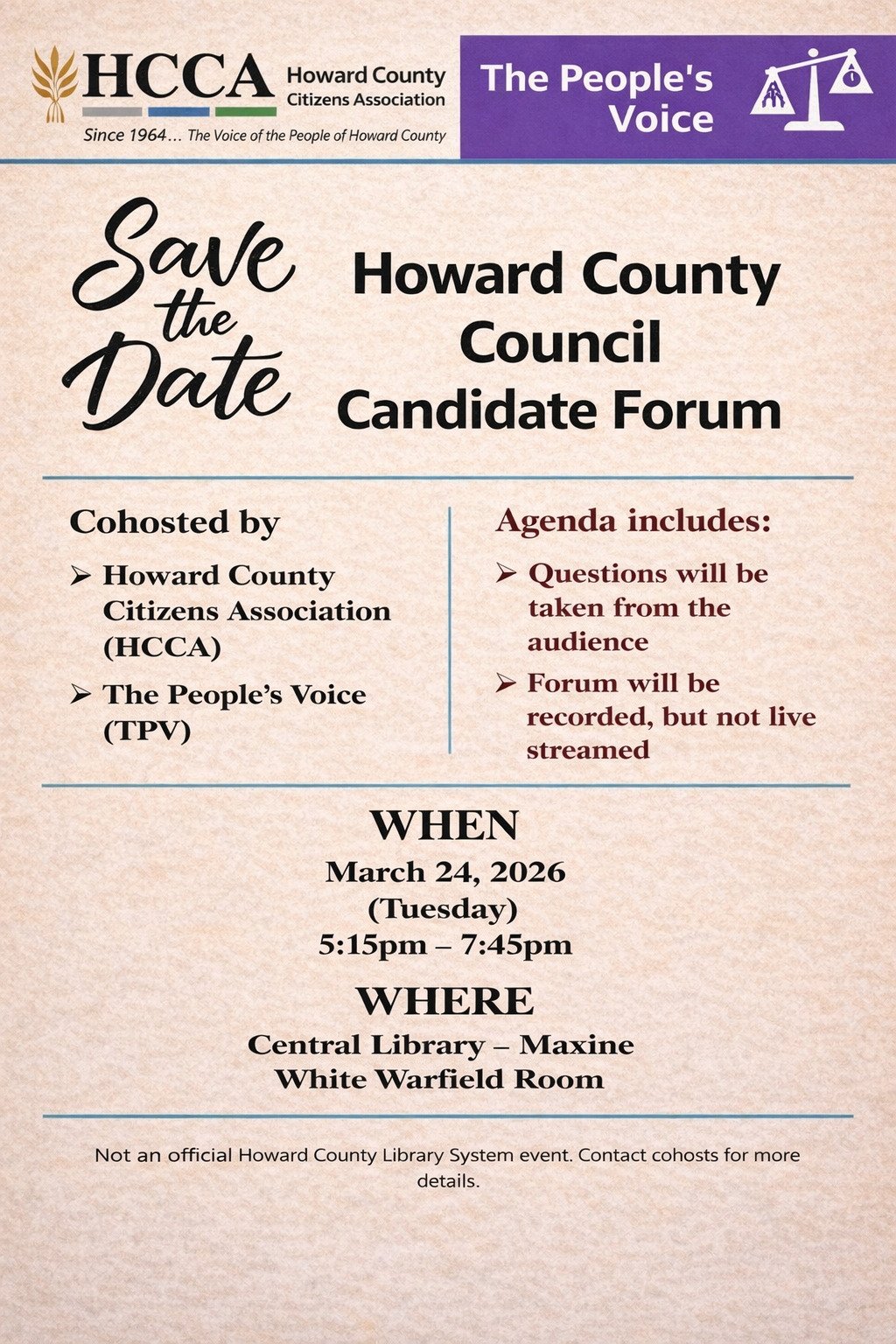 Cohosted By Howard County Citizens Association (HCCA) & The People’s Voice (TPV)